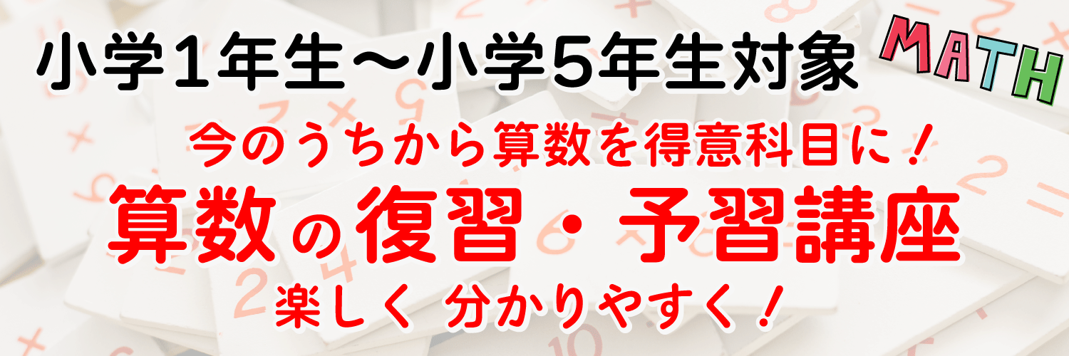 小学1年生から5年生を対象とした、算数の復習・予習を個別指導で行う講座です。