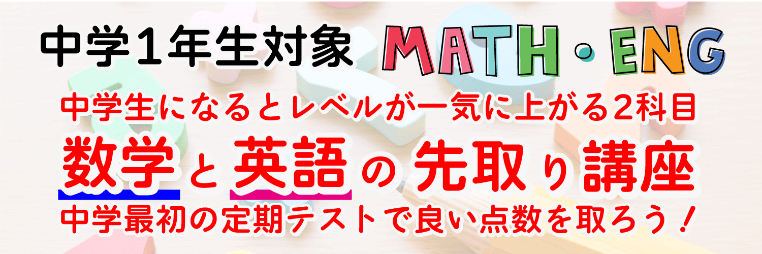 中学2年生対象の、2年生範囲の予習をするための講座です。