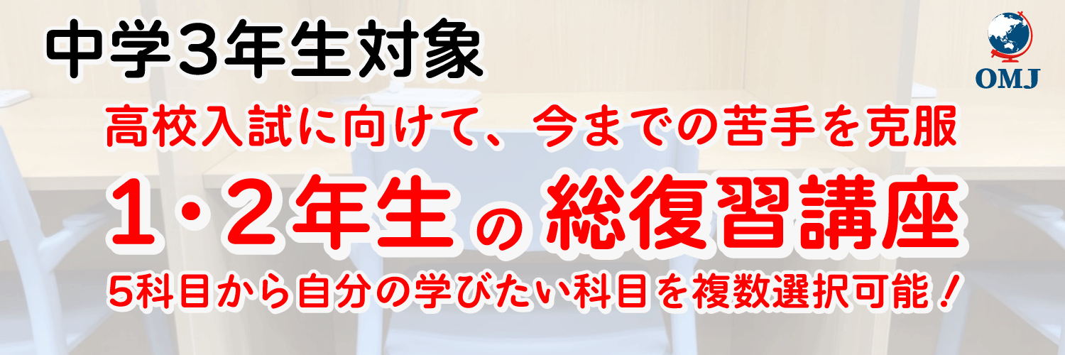 中学3年生対象の、1・2年生範囲の復習をするための講座です。